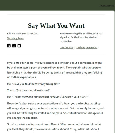 This newsletter is about learning the Executive Mindset, the art of effectively getting work done through others.